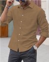 Men Fashion Casual Basic Solid Color Plus Size Long Sleeve Lapel Shirt