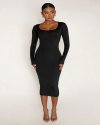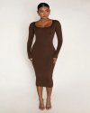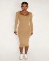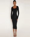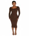 Women Fashion Solid Color Round Neck Long Sleeve Tight Dress